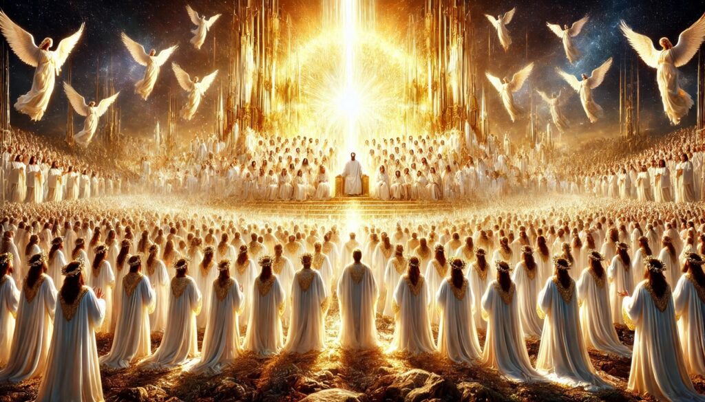 When you look at this image, based on Revelation 20:11, you get a sense of the grand scale. The great multitude stands before the throne of God. There is a host of angels flying above. And there are more saints seated behind God’s throne and in the wings. Heaven is lit up with the Glory of God. It is a Great Multitude in Heaven, and we will all get to see it.